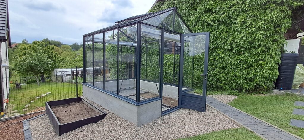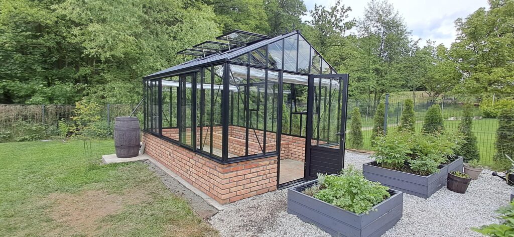 Montaż szklarni ogrodowej Euro Gothic o wymiarach 309cm x 457cm na podmurówce o wysokości 63cm. Aluminiowa konstrukcja w kolorze RAL 9005 – czarny głęboki została w całości pokryta szybą hartowaną 4mm. Na dachu zamontowano sześć okien z czego trzy z automatycznym mechanizmem otwierania i trzy z mechanizmem otwierania Spindel. Na krótszej ścianie pojedyncze drzwi na […]