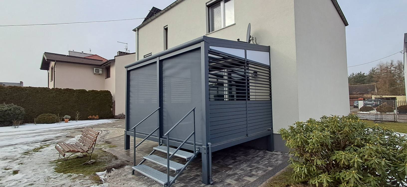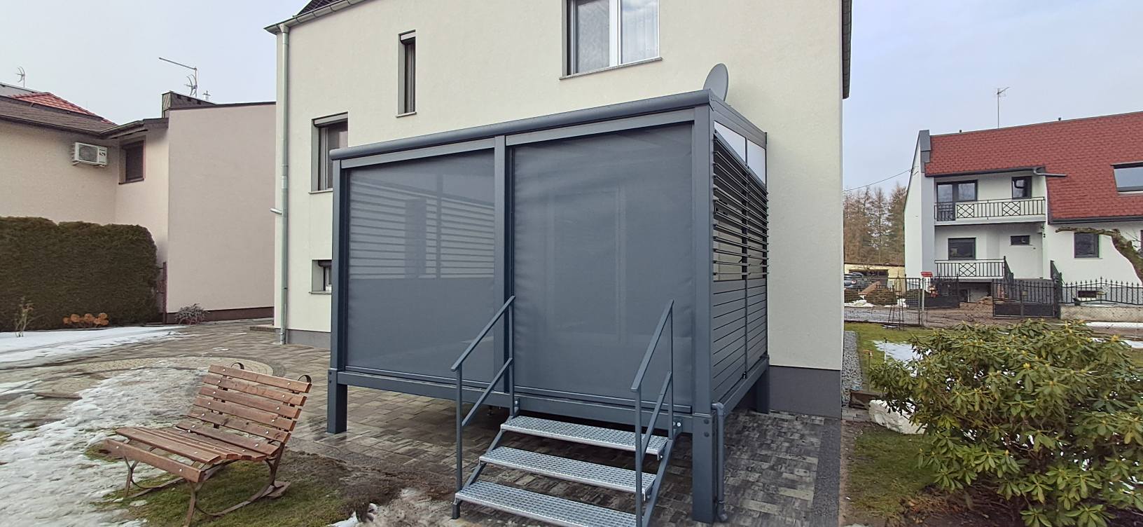Aktualizacja: Do zamontowanej niedawno zabudowy tarasu dołączyły dwie rolety ścienne ZIP marki Selt sterowane pilotem Somfy.